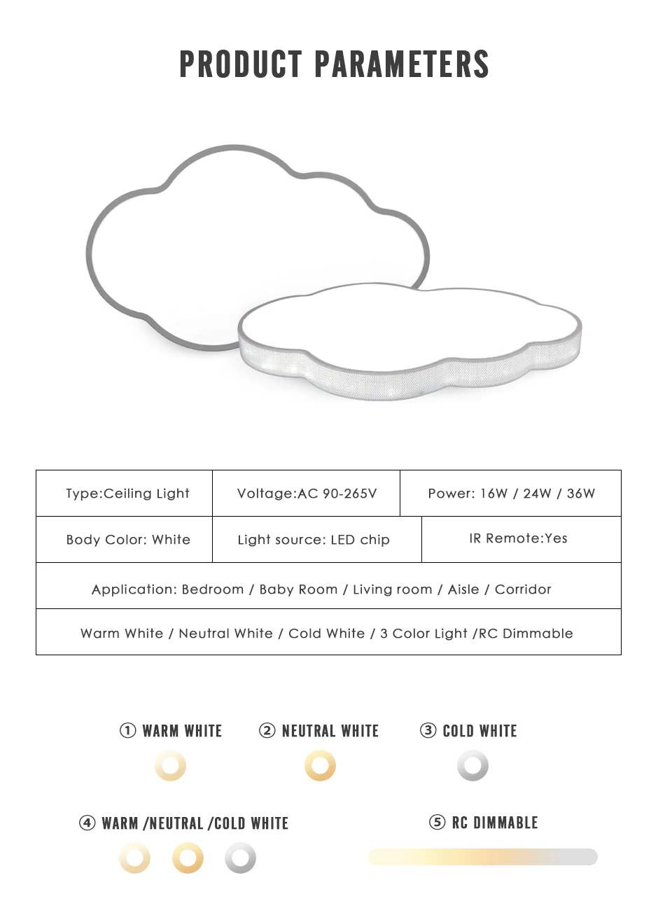 【Нейтральный белый 】: изменение цвета с помощью настенного выключателя, три цвета: холодный белый, белыйБез пульта ДУ, без затемнения