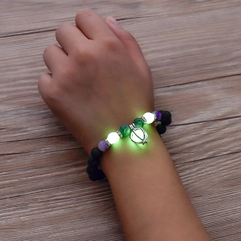 Светящийся браслет Материал: вулканический камень эластичная веревка Упаковка: индивидуальная упаковка цвет: цвет изображения Вес: 20 грамм Размер бусины: 8 мм 12 мм внутренний диаметр: 55 мм Цвет покрытия: древняя бронза древнее серебро