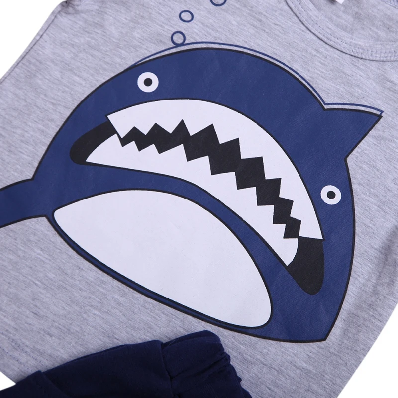 Повседневная хлопковая футболка с короткими рукавами и принтом акулы комплект из топа и шорт, который сделает ваших детей крутыми и привлекательными