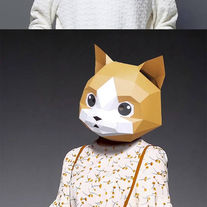 3D бумажная модель, маска для лица, бумажная ремесло, сделай сам, кот, Китти, животное, шалость, игрушки, забавная шутка, крутые вещи, сумасшедший косплей, подарок на вечеринку в честь Хэллоуина