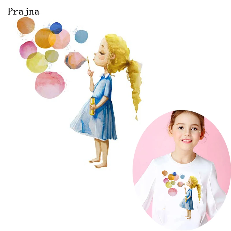Prajna милая девушка теплопередача для одежды печать железа на наклейках для одежды DIY мультфильм теплопередача удар пузыри патч