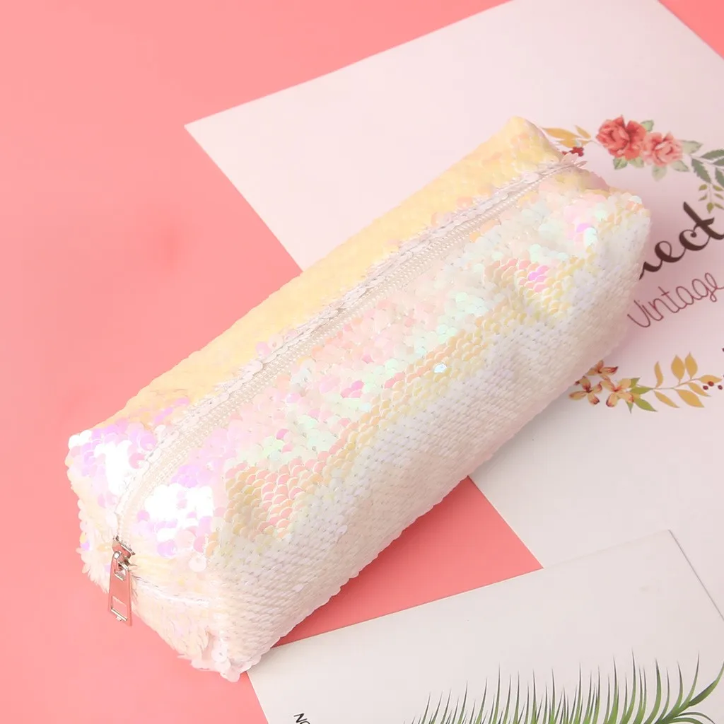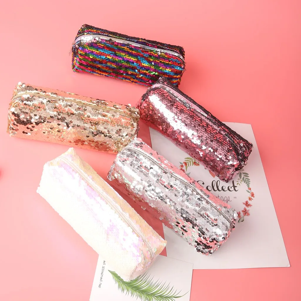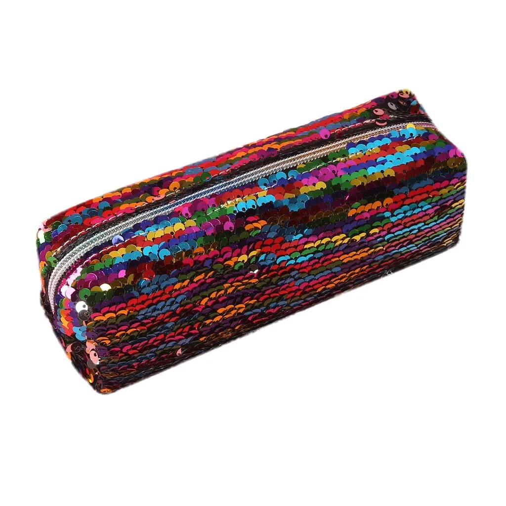 Women's Outdoor Fashion Trend Long Solid Color Leather Sequin Pencil Case