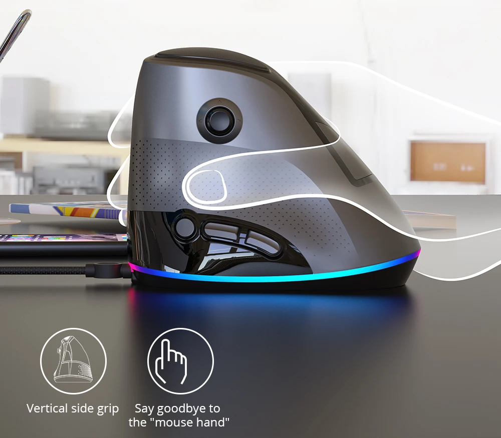 Вертикальная мышь на основе улитки bionic, в сочетании с эргономикой, чтобы заменить плоскую рукоятку традиционной мыши с эректированной боковой рукояткой, делает руку растягивающейся естественным. Традиционная мышь, запястье Необходимо повернуть, чтобы поддерживать ладонь, а рука находится в жестком состоянии. Вертикальная боковая рукоятка мыши, облегчающая запястье.
