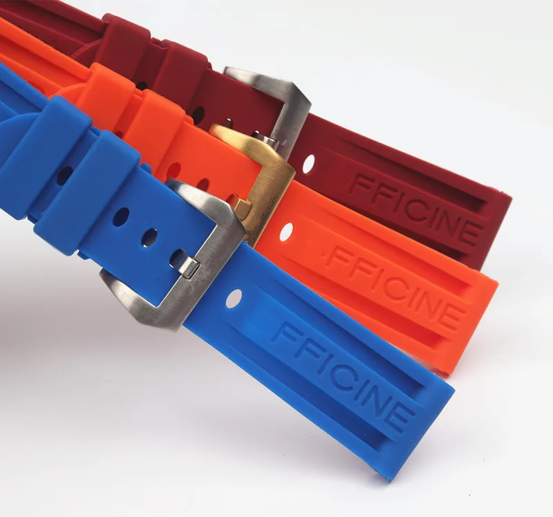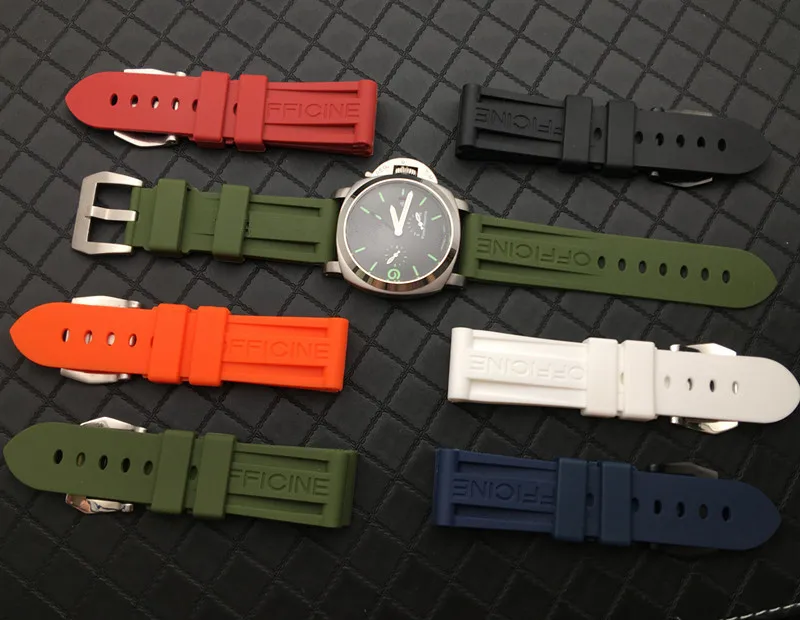 22 мм 24 мм 26 мм черный синий красный оранжевый белый армейский зеленый ремешок для часов силиконовый резиновый ремешок для часов подходит для Panerai игла для ремня пряжка
