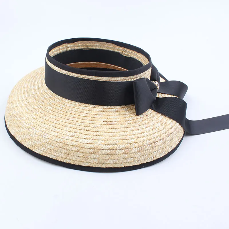 Decorated with bowknot and ribbon, this straw hat is quite special for the reason that it has no crown. With large brim, your face will be covered pretty well as sunblock by this hat. When you're going on vacation, don't forget to take it with you.