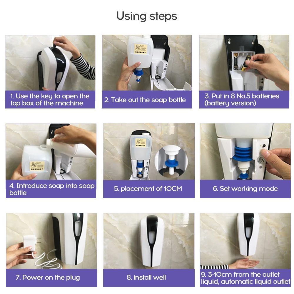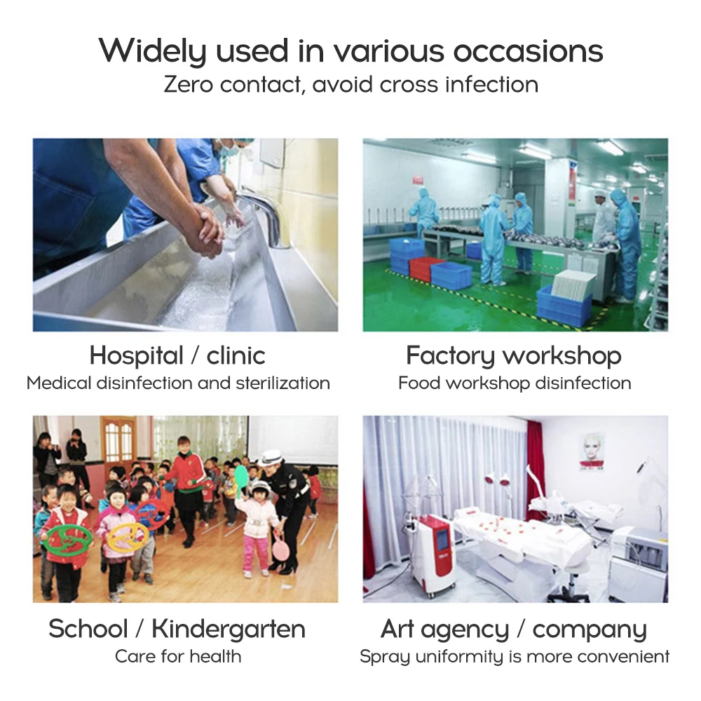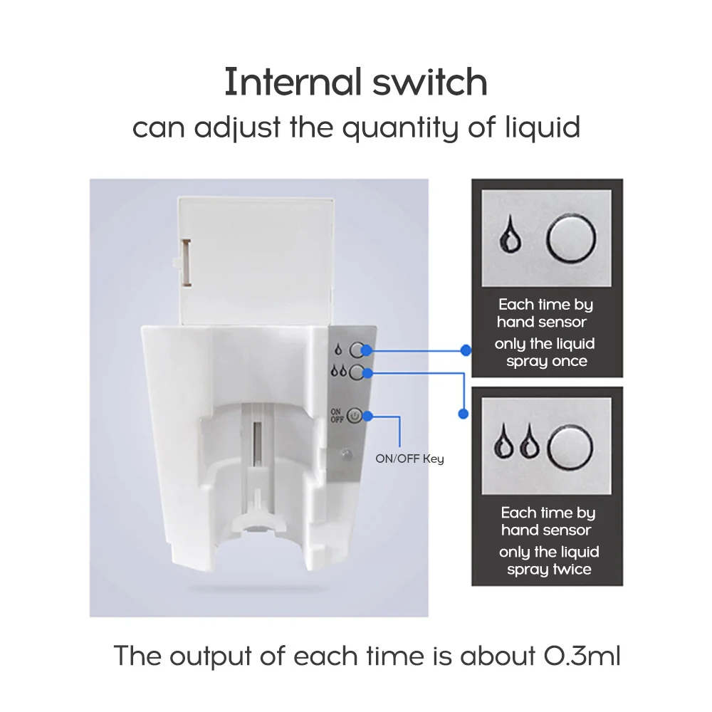 Автоматический датчик работает, БесконтактныйМашина для дезинфекции рук предназначена для дезинфекции рук дезинфицирующим средством или спиртом и обеспечивает автоматическую дозировку спрея, что обеспечивает быструю и легкую дезинфекцию рук и устраняет перекрестное загрязнение, обеспечивая оптимальную гигиену рук.