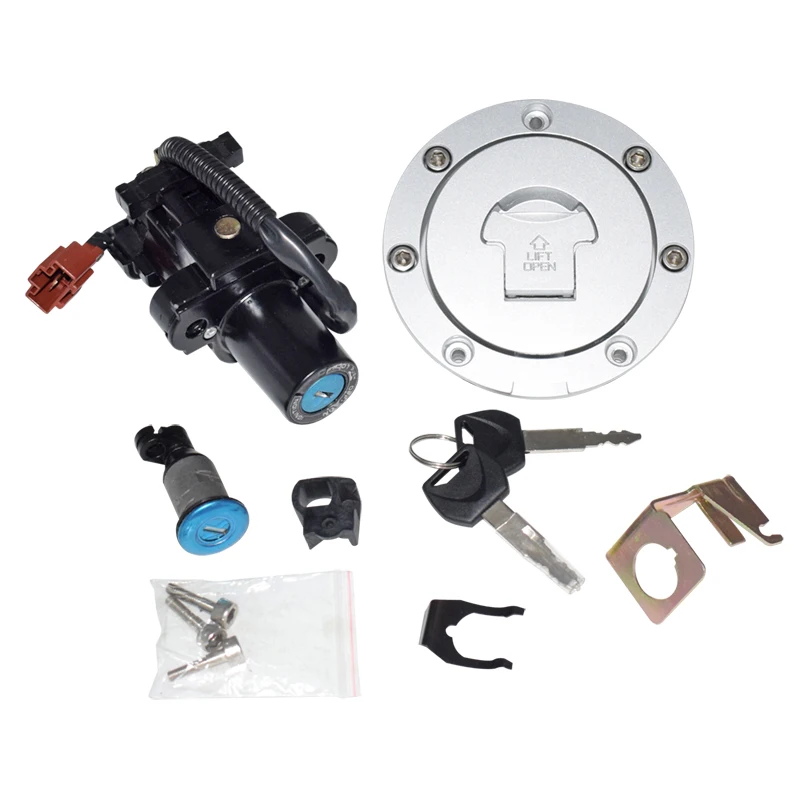 Fitment: For Honda CBR1000RR 2008-2014 For Honda CBR600RR 2007-2014 Features: High grade machined cut for perfect fit,rust and corrosion resistant 3-wire ignition switch connection(2-Pin male connector+1 wire), just plug and play Allow to unlock the ignition switch/fuel gas cap/seat lock just by one blank key A Full Lock Key Set concludes: 1x fuel gas tank cap cover, 1x ignition switch, 1x seat lock 2x blank keys