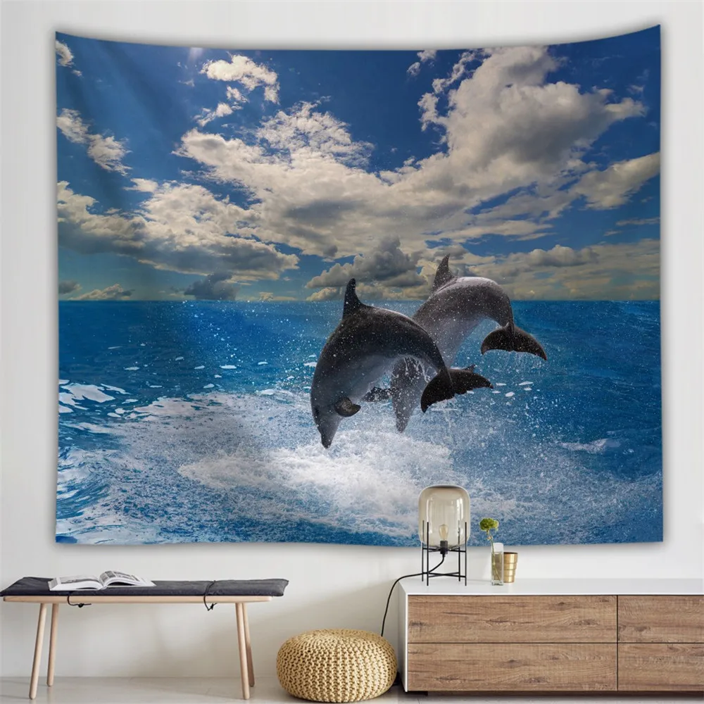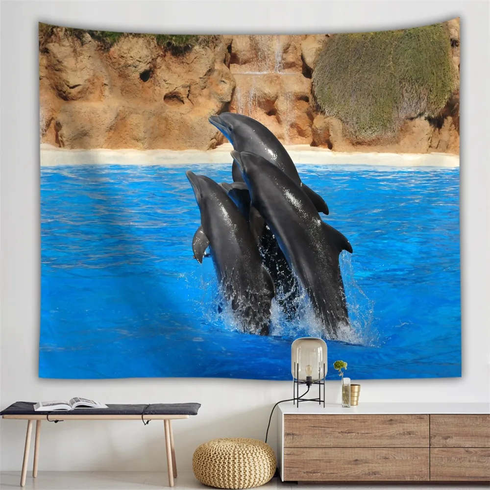 Мандала индийский гобелен настенный 3D мультфильм мир Дельфин Пингвин богемный пляжный коврик полиэстер одеяло для йоги