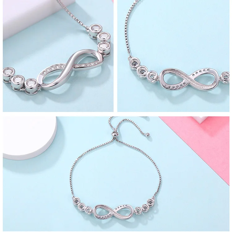 Хит продаж, популярный серебряный браслет бесконечная любовь, бант бесконечность, на шнуровке, теннисные браслеты для женщин, модные ювелирные изделия YIB037