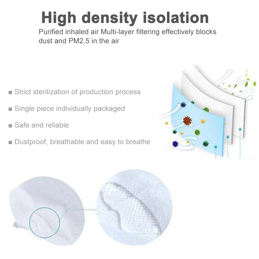 3-Layers: Including filter layer, electrostatic adsorption layer, which will effectively against viruses in the air, providing you a longer-term security protection.