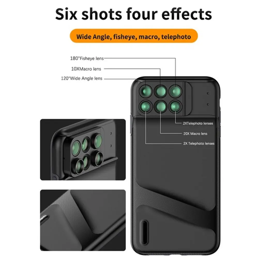 3,6 В 1: 6 линз, четыре эффекта, широкий угол, рыбий глаз, макро, телефото.