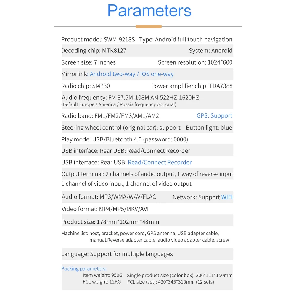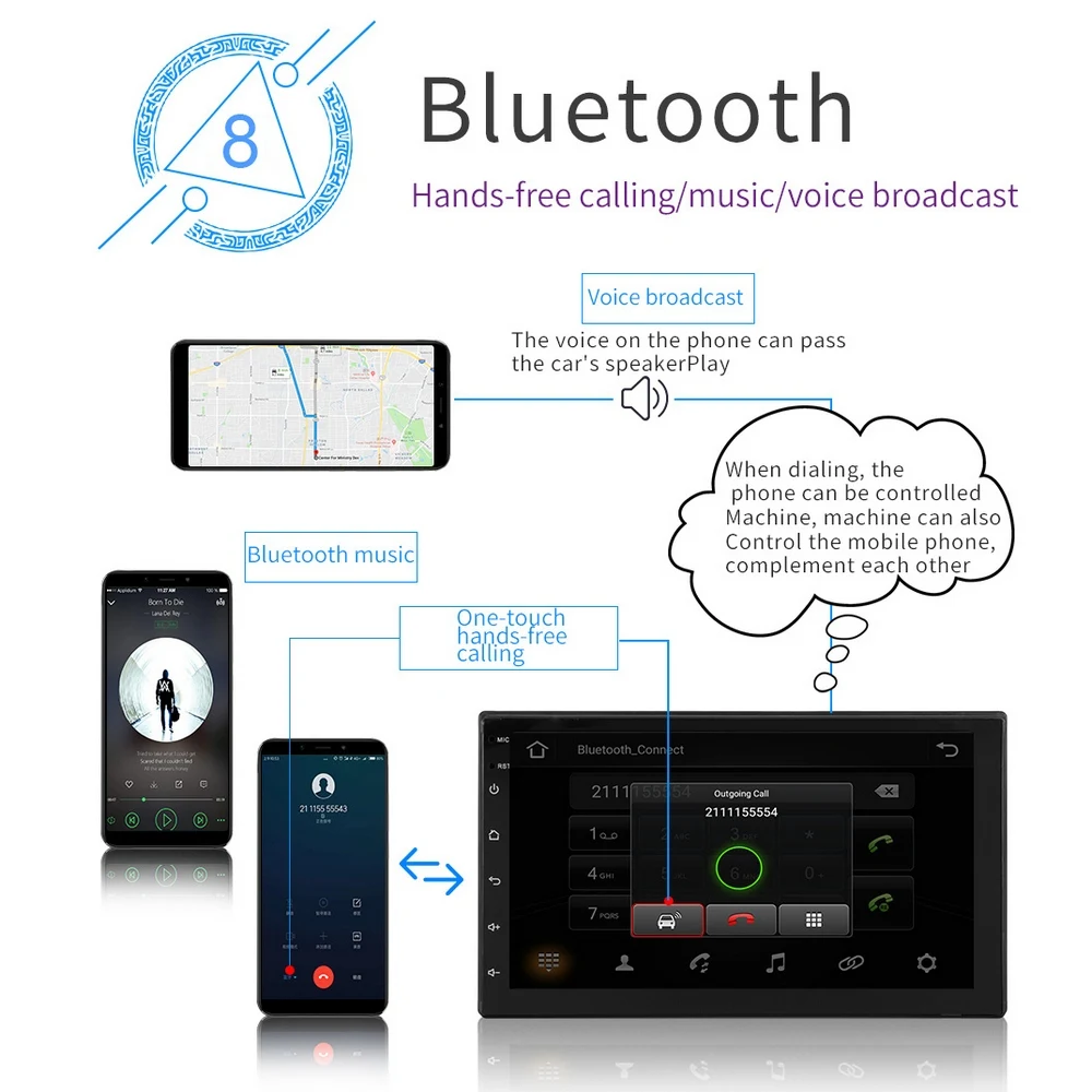 7-дюймовый автомобильный мультимедийный MP5 плеер Gps навигационная карта Android 8,1 Bluetooth Hd сенсорный Экран радио изображение при движении задним ходом мульти-языковой