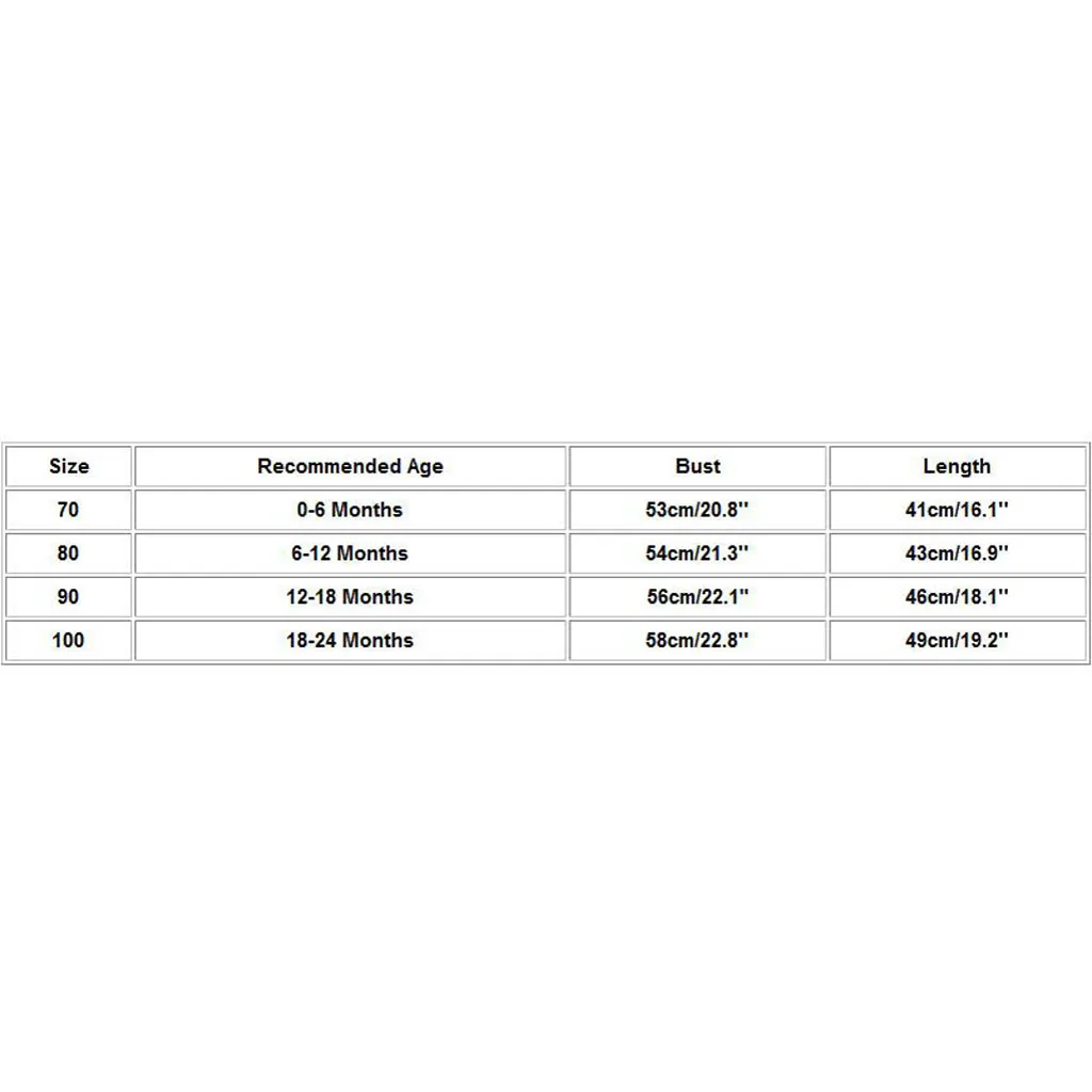 Размеры Рекомендуемый возраст Обхват груди Длина 70 Для детей от 0 до 6 месяцев 53 см/20,8'' 41 см/16,1'' 80 6-12 месяцев 54 см/21,3'' 43 см для ухода за ребенком для мам/16,9'' 90 12-18 месяцев 56 см/22,1" 46 см/18,1'' 100 18-24 месяцев 58 см/22,8'' 49 см/19,2''