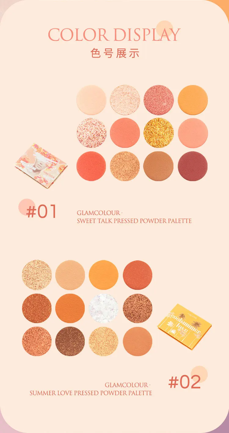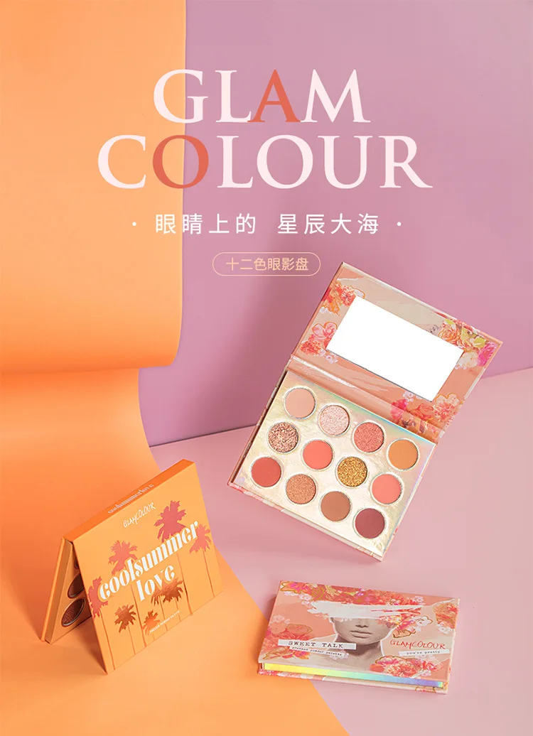 Glamcolor 12 цветов Тени для век Палитра блестящие тени для век мерцающие микро-вспышки матовые большие блестки Сияющие тени для век Косметика для макияжа