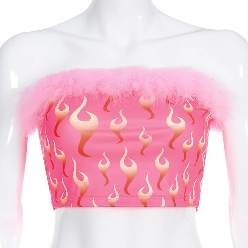 Женский топ на бретелях с пожарным принтом, сексуальный светоотражающий Топ без рукавов с пряжкой
