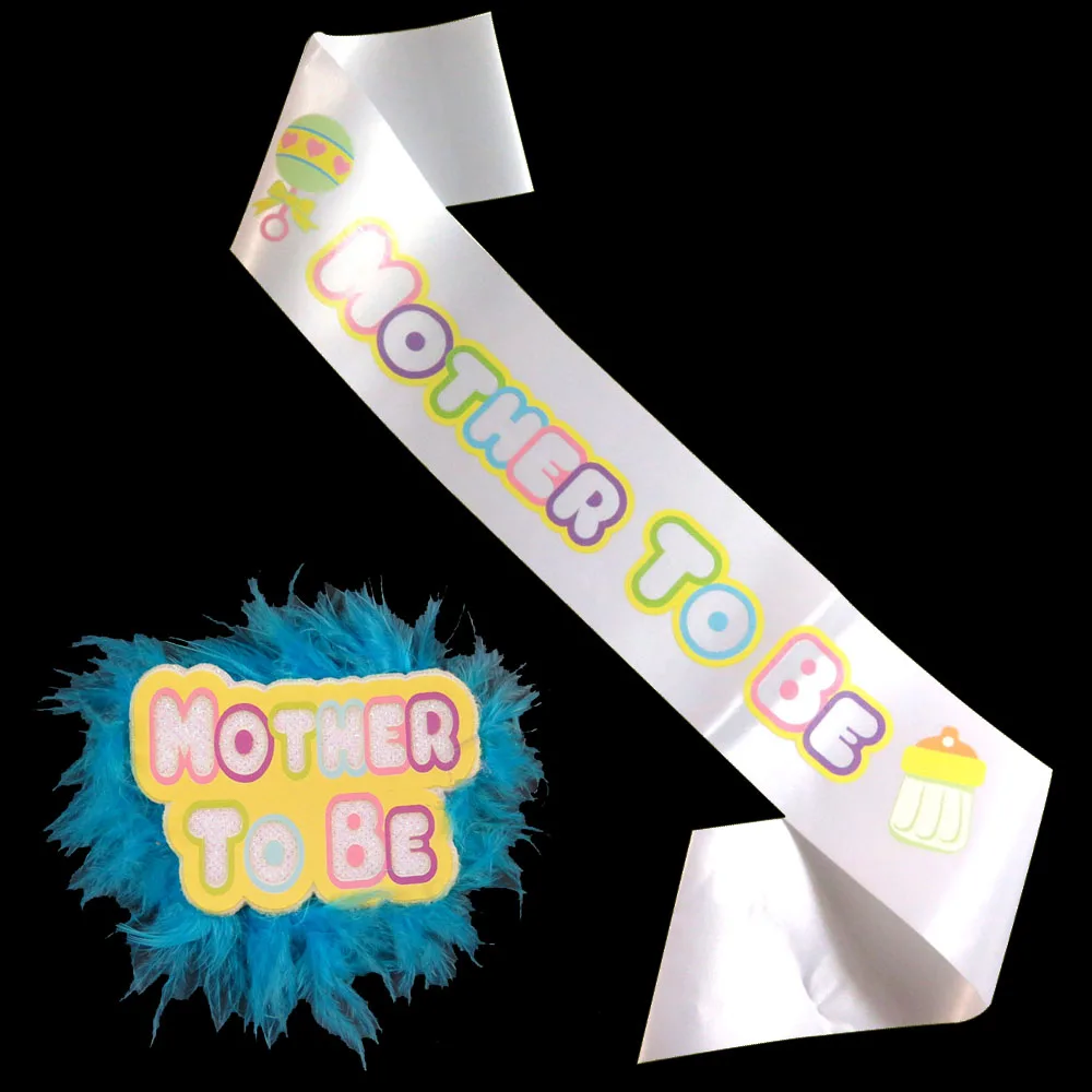 Набор синих перьев, эмблема на ткани, новый дизайн 2020, сатиновые ленты для детского душа, цветные вечерние платья с принтом для мамы