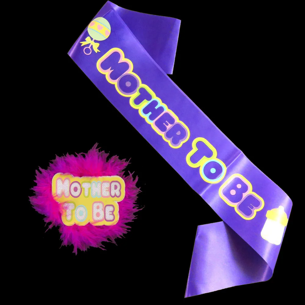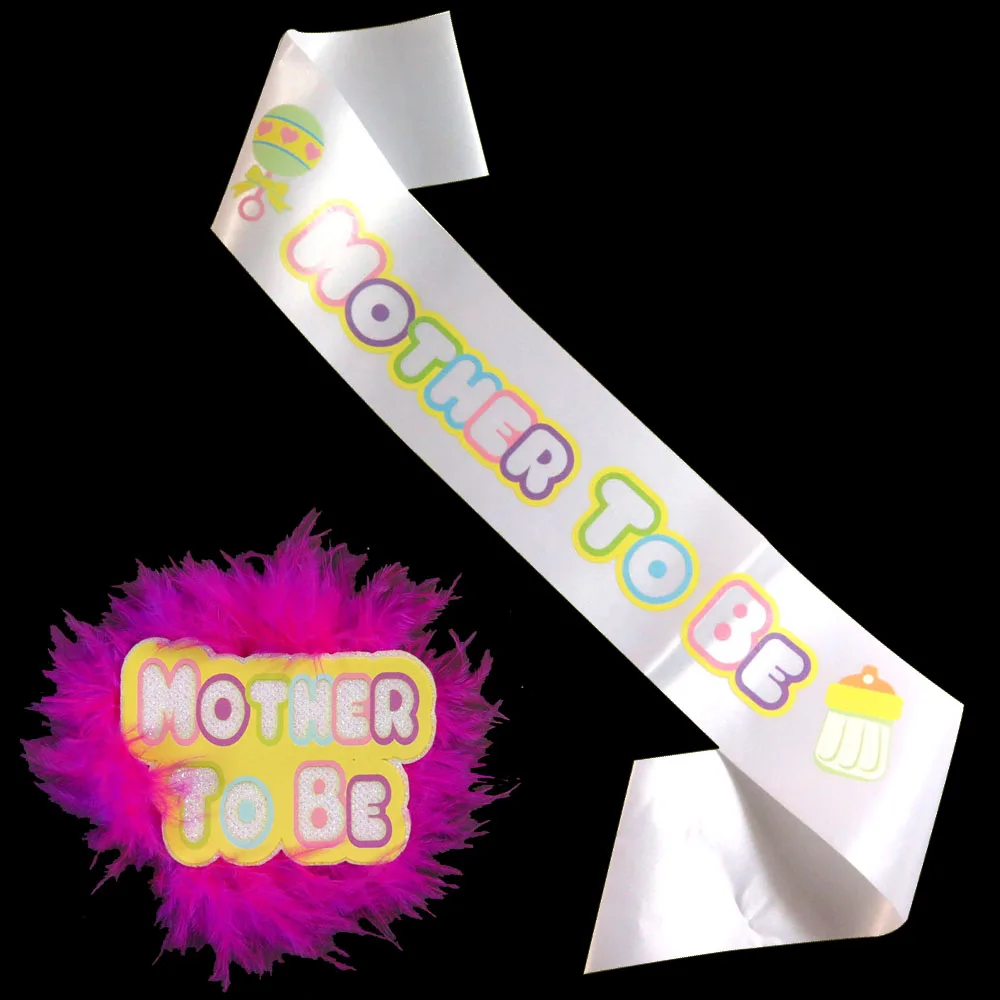 Ярко-Розовое перо для детского душа вечерние комплекты эмблема на ткани 2020 Новый дизайн атласный пояс красочные матери быть печать вечерние товары для мероприятий