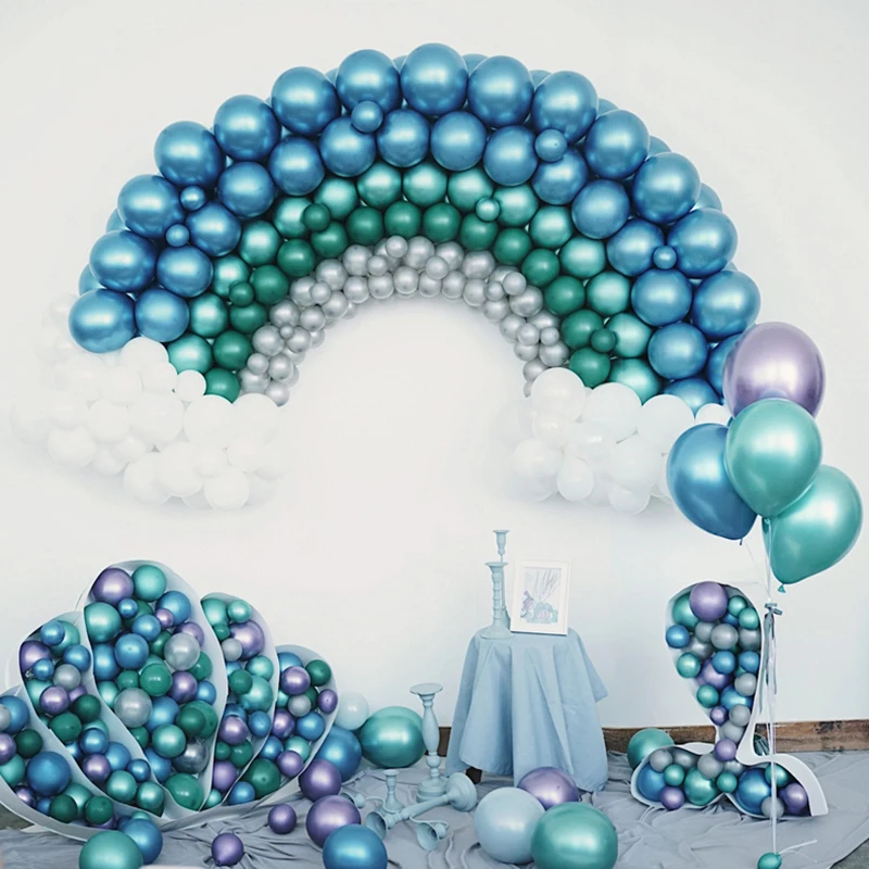 Материал: металлические латексные шары Размер: 5/10/12-дюймовый металлические шарики Количество: 30/50 шт./лот Сценарий применения: свадьба, день рождения, детский душ 1-го 2-го, Рождественская декорация, deco anniversaire, вечеринка шампанского