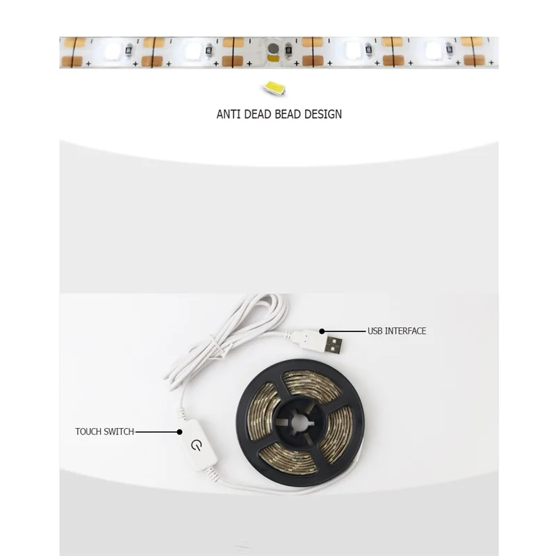 Usb-разъем/сенсорный переключатель Защита окружающей среды водонепроницаемый мягкий клей Нетоксичный, не раздражающий, высокий светильник передачи и водонепроницаемый класс IP-44 Предпочтительный светодиодный светильник Светодиодный точечный светильник источник имеет большую площадь, и светильник источник увеличивает светильник излучающая площадь Светодиодный бисер Модель: 2835 Одиночный Световой поток: 20 (лм) Входное напряжение: 5 (в) Светодиодный Бисер: 60 (шт/метр) Цветовая температура: Теплый светильник 2700K Белый светильник (холодный светильник) 7000K