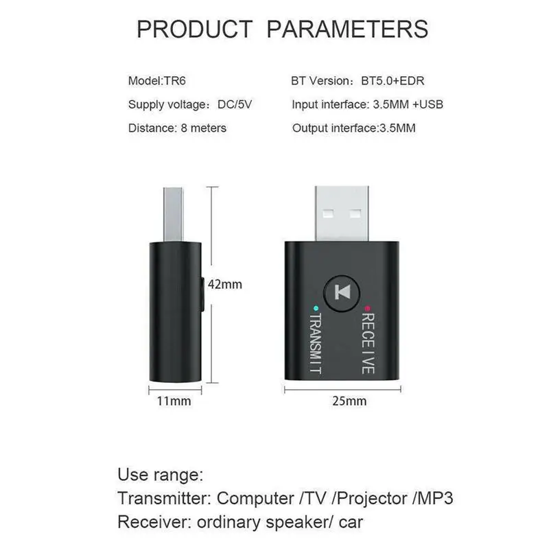 Примечание: в режиме передачи, этот продукт имеет USB + AUX Двойной вход функция. В том случае, если оно применяется компьютер, вам не нужно подключать аудио кабель, просто подключите его непосредственно в USB;