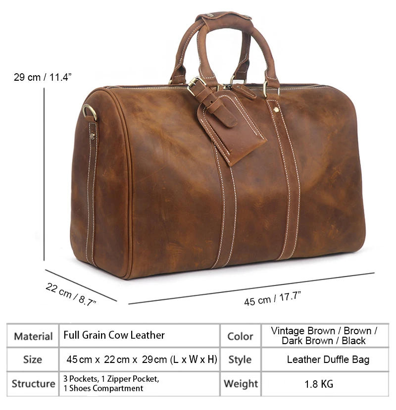 Особенности: -Он был сделан из отборной коровьей кожи с натуральным лицевым покрытием. -Стильный и особый дизайн -Большой объем для использования в путешествиях -Может включать 15 "ноутбук, коврик, А4 Размер документа и т. Д. -Прибл. Размер 45 см (д) х 29 см (в) х 22 см (ш)