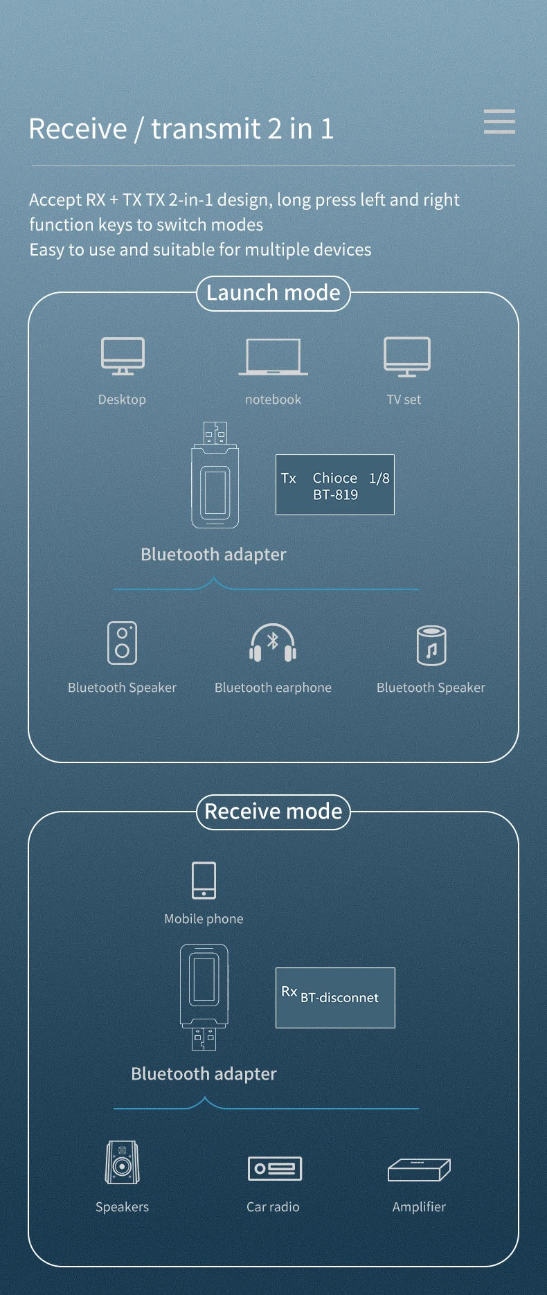 Tebe ЖК-дисплей беспроводной адаптер Bluetooth 5,0 аудио передатчик приемник 3,5 мм Aux разъем 2 в 1 USB Bluetooth ключ для ТВ ПК