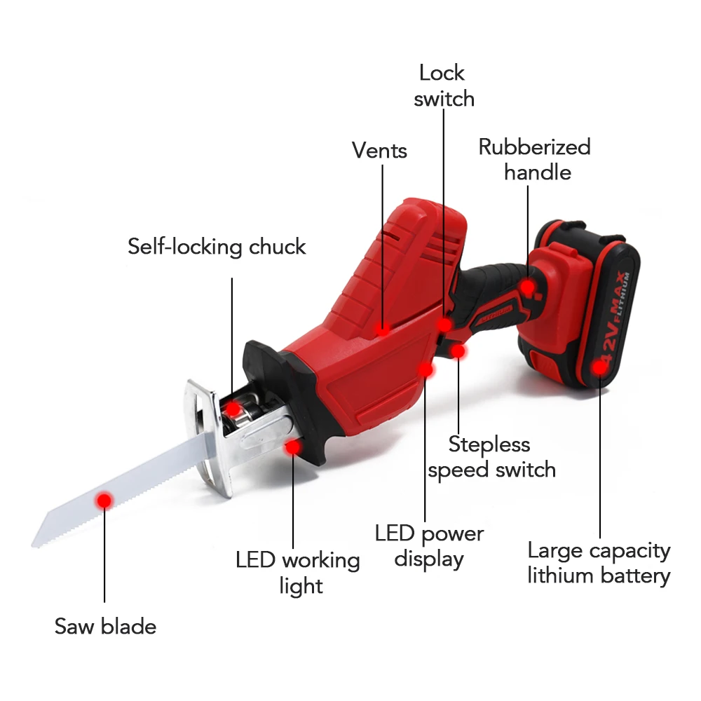 This reciprocating saw is portable for carrying, without messy buttons, you can use it with only one hand which is pretty convenient.