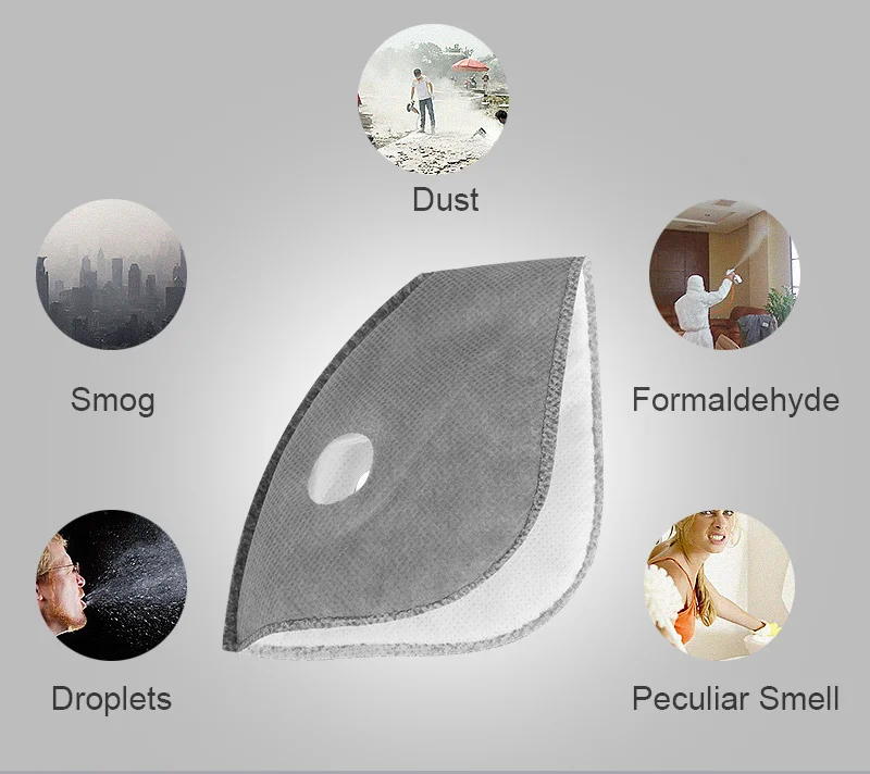 Материал маски изготовлен из ткани для дайвинга, это нормально, чтобы иметь небольшой запах. Для вашего здоровья рекомендуется снять фильтры перед использованием, а затем замочить маску в теплой воде на 15 минут. (Фильтр с активированным углем нельзя мыть.)