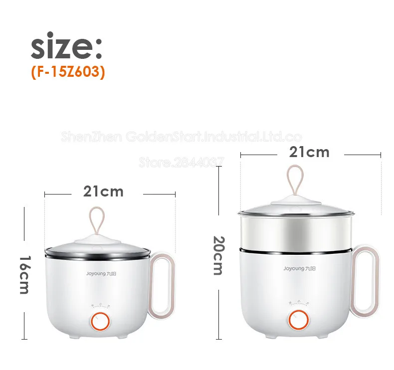Название: Joyoung электрическая мульти-плита Модель: F-15Z603 Напряжение: 220-240 В (50 Гц/60 Гц) Мощность: 300 Вт-600 Вт Емкость: 1,5 л Размер изделия: W21cm * H16cm (без отпаривателя),W21cm * H20cm (с отпаривателем) Подкладка: материал подошвы: полиуретан толщина 8,5 см Материал: антипригарное покрытие + ПП