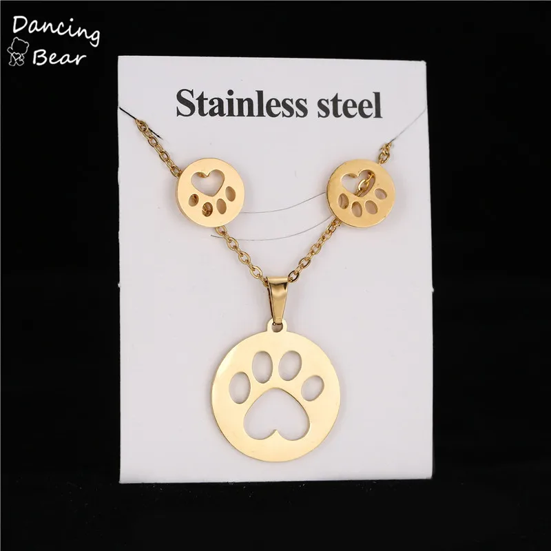 Из нержавеющей стали медвежьи Бог ожерелье с подвеской в виде лапы серьги наборы для женщин колье подвески Цепочки ювелирные изделия ожерелье для женщин