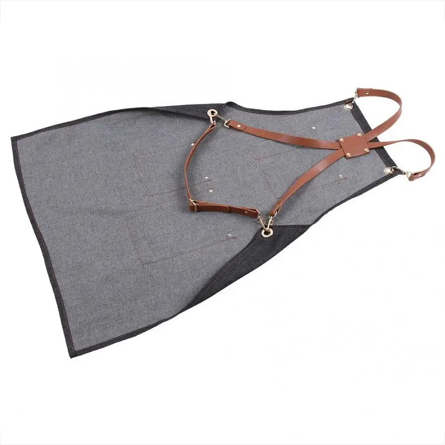 ТоварИзготовлен из прочной плотной джинсовой ткани и ремня из натуральной кожи; Улучшенная прострочка; Толстый верх и низ с отворотом. Разный Размер передних карманов, чтобы держать ваши инструменты организованными; Уникальный держатель ремешка для ручки или ложки.