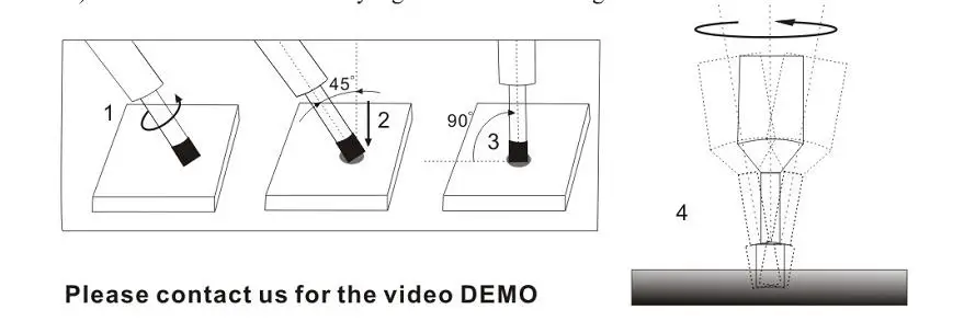 * Поместите сверло под углом 45 градусов* Сверление, пока отверстие не начнет формироваться* Вставьте сверло в вертикальное положение* Продолжайте сверлить и качать машину по кругу