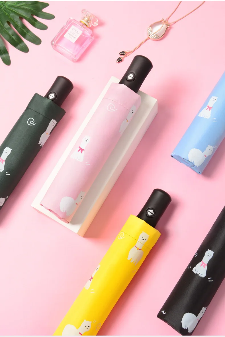 Пластиковый автоматический Солнечный зонт, мультяшная серия, анти-УФ зонтик, защита от солнца, Женский тройной складной зонт для мужчин, автоматический