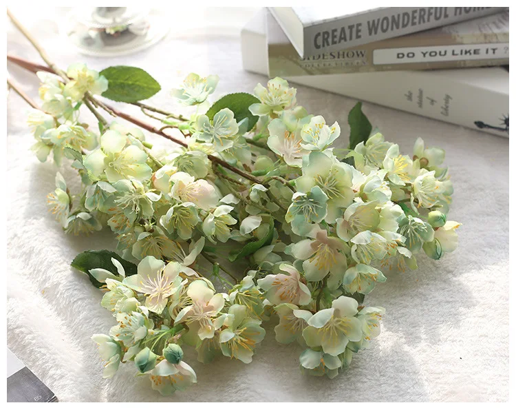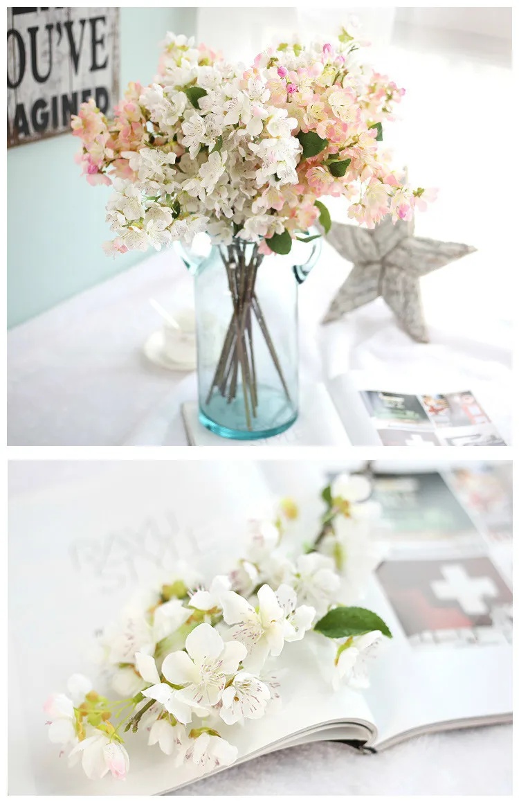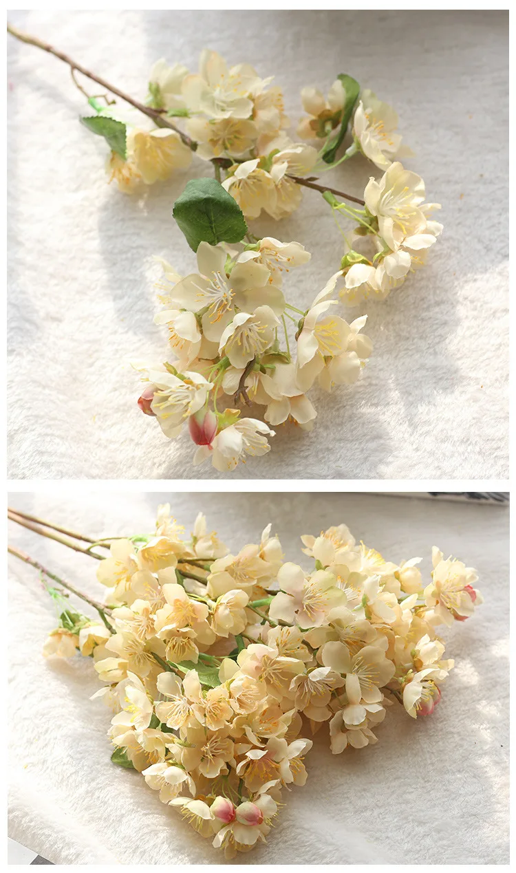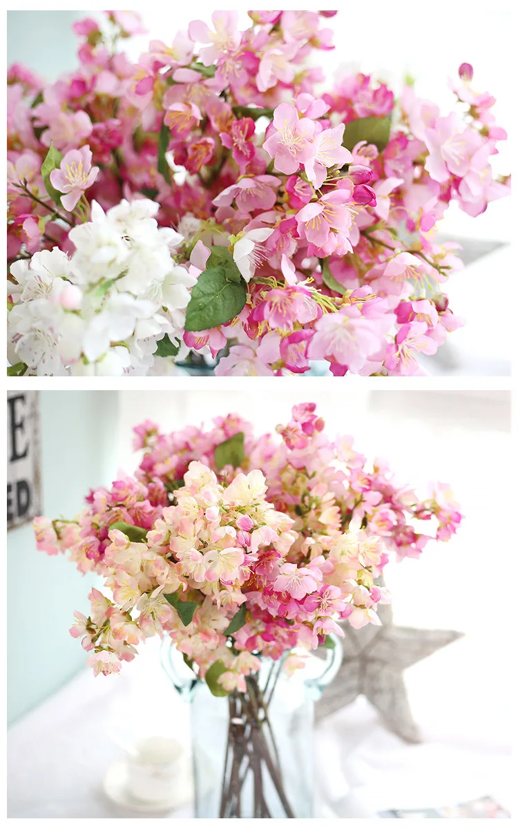 Розовый белый Шелковый цветок искусственная вишня ветка Сакура цветы пластик персик Флорес букет для свадебной вечеринки украшения дома
