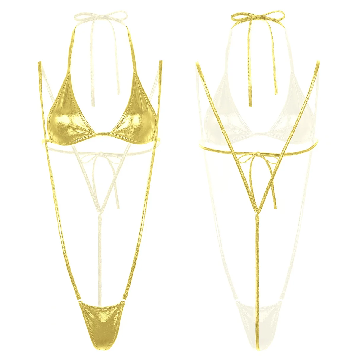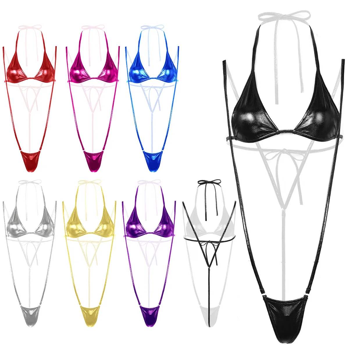 Женское Эротическое блестящее металлическое мини-нижнее белье мини-бикини, один размер подходит для большинства.