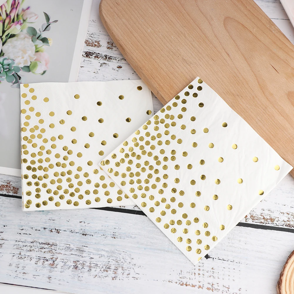 20 шт./лот, Золотая фольга в горошек, салфетки, столовая посуда, салфетки, бумага для дома, свадьбы, вечеринки, ресторана, украшения стола