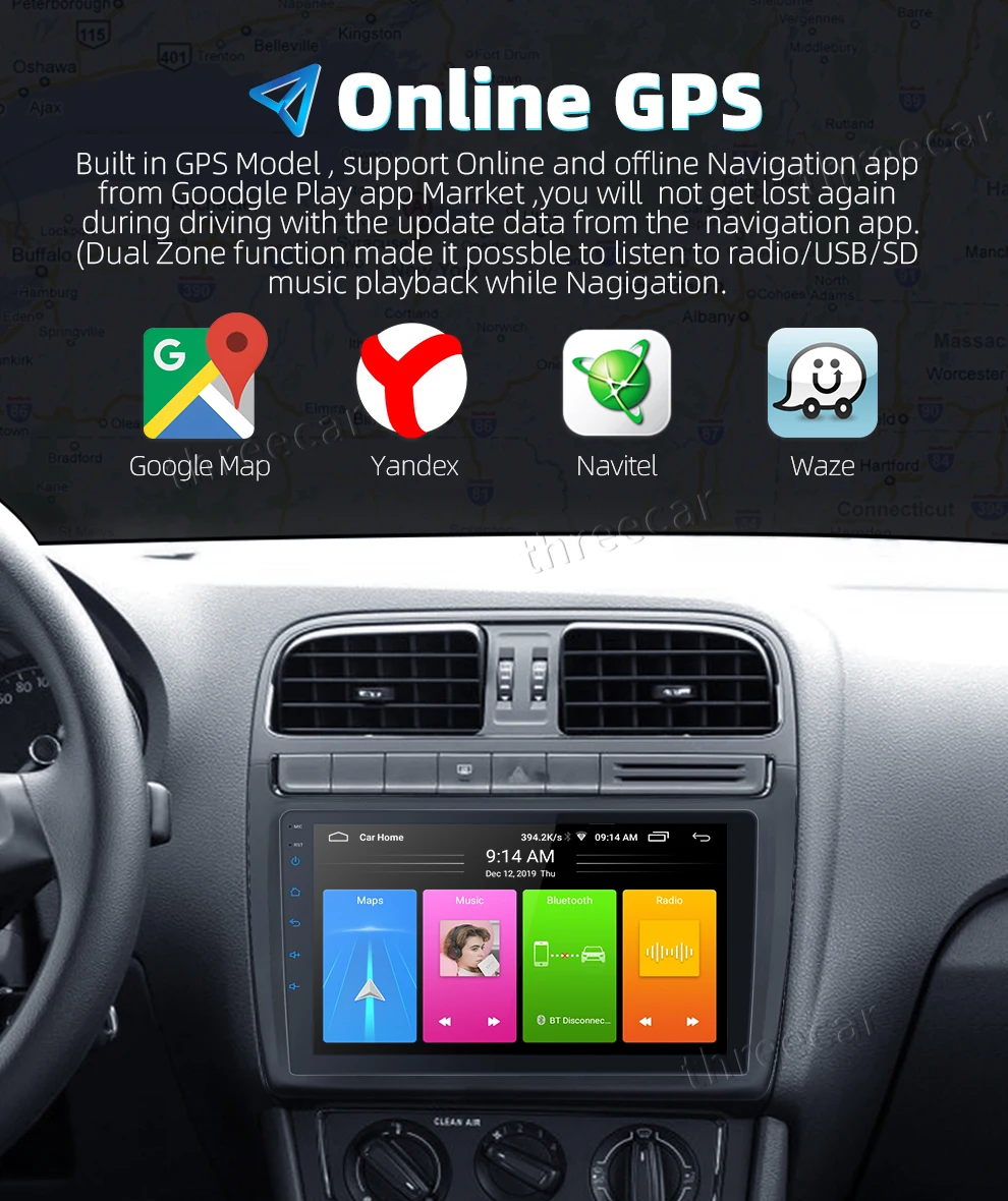 Изюминка: 1. Четырехъядерный процессор 2. ОС Android 9,0 (новейшая версия) 3. Встроенный av-выход (поддержка подключения всех видов к монитору подголовника) 4, встроенный 1G + 16GB 5, встроенный 2USB вход, он может воспроизводить музыку/Кино/фото с местного диска или подключенной tf-карты. Новое поступление: 2.5D экран, сплит-экран