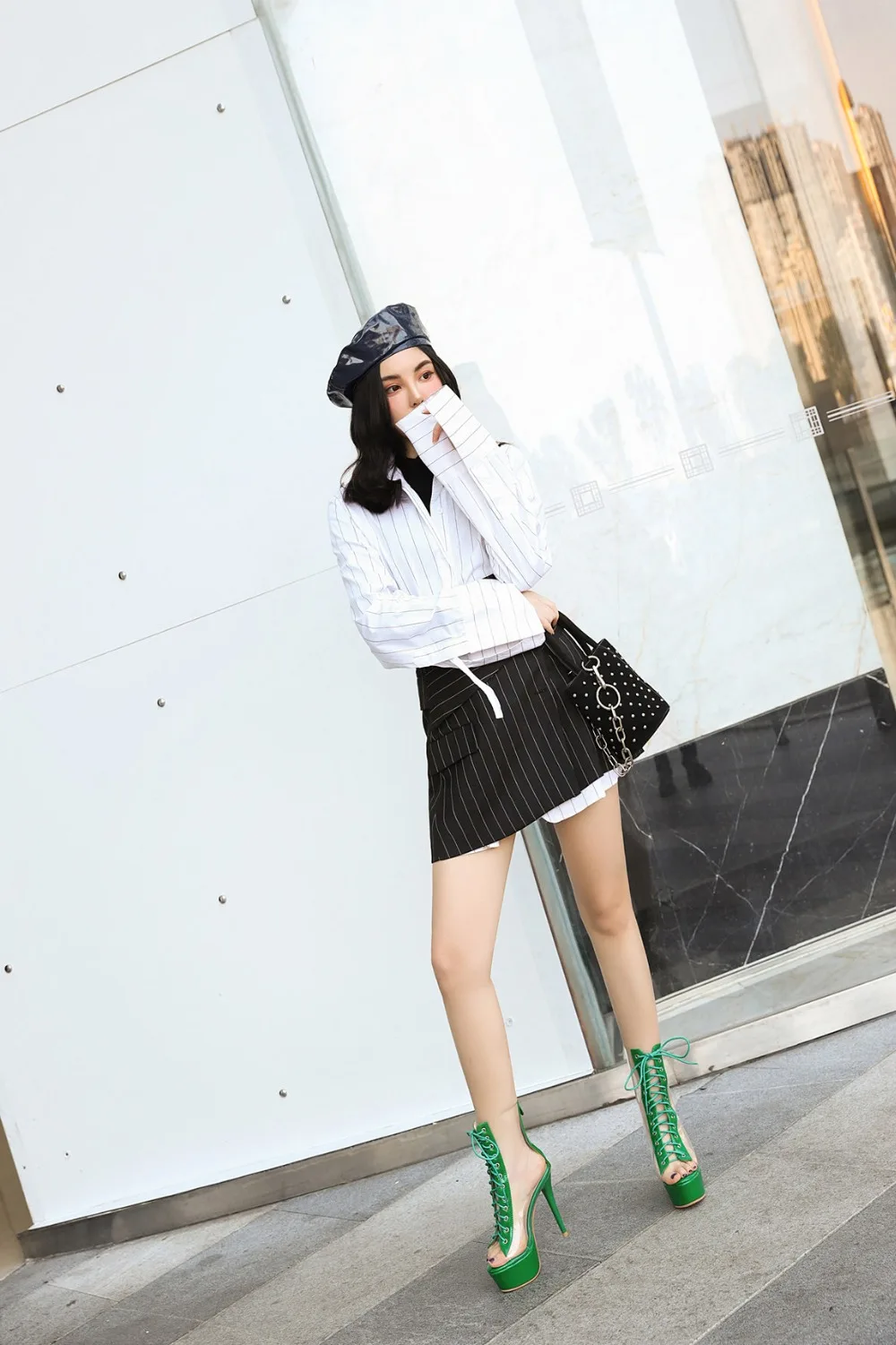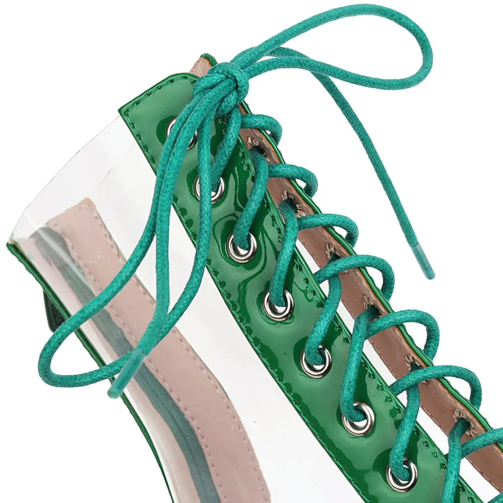 Женские летние ботинки с открытым носком ботильоны на высоком каблуке-шпильке женские непромокаемые ботинки из ПВХ на высоком каблуке со шнуровкой, 2020 размер 17 48Материал верха: лакированная кожа из искусственной кожи и прозрачный ПВХ