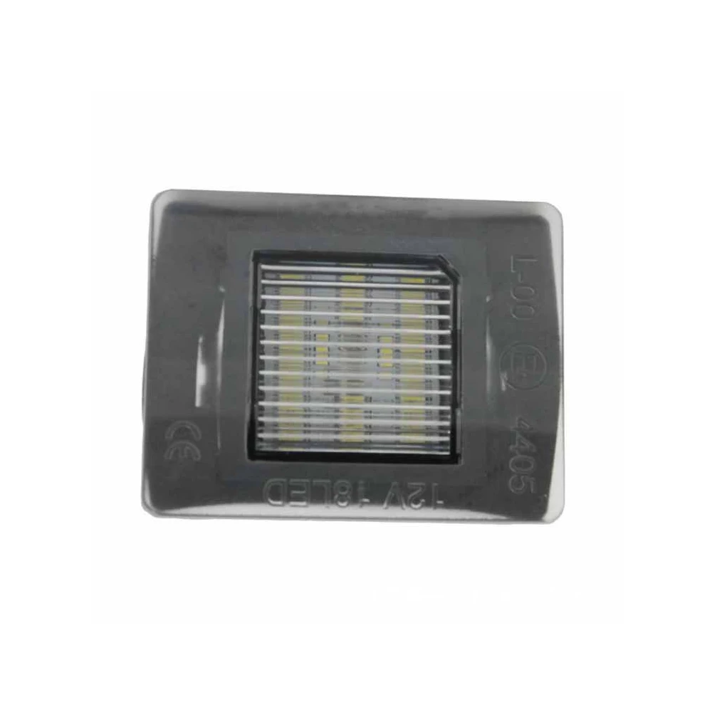 Есть одна пара мощных светодиодных ламп без ошибок. Каждый свет номерного знака оснащен 18 светодиодами 3528 SMD, производящими супер яркий свет. Низкое энергопотребление, высокая эффективность и энергосбережение. Прямая установка, без проводки или модификации, просто подключите и играйте. Не повреждает оригинальный корпус. Нет ошибок obc на всех моделях приложений.