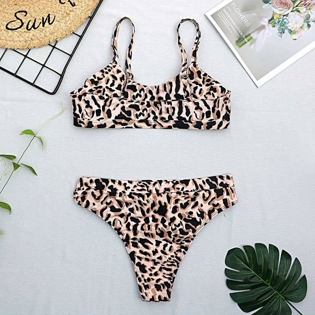 Женский сексуальный комплект бикини с леопардовым принтом, пуш-ап бюстгальтер, купальник, пляжный купальник, купальный костюм