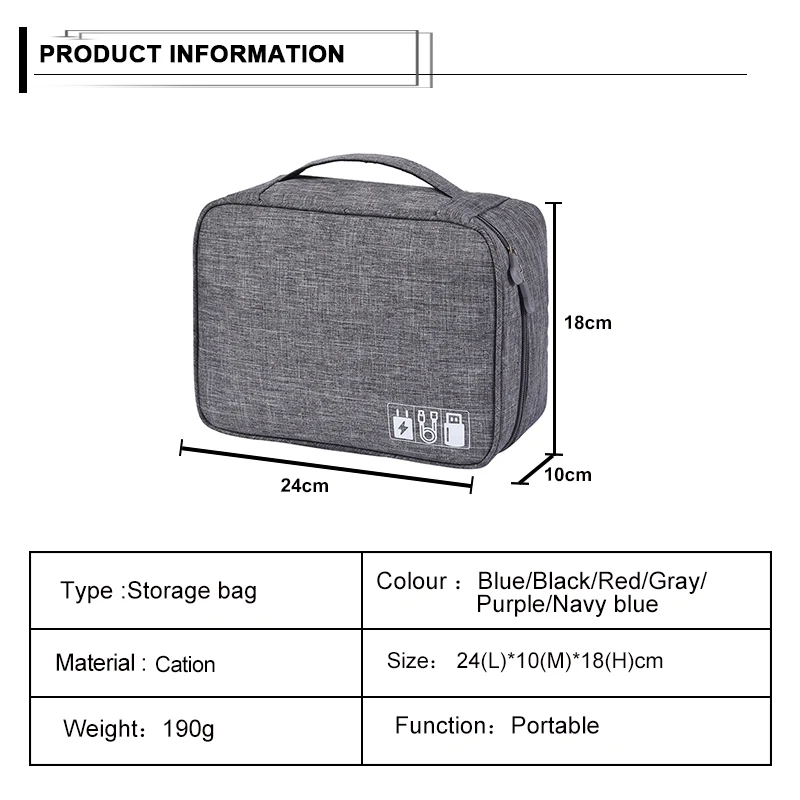 Многофункциональная сумка для хранения водонепроницаемый цифровой кабель банк питания сумка путешествия Цвет: черный/синий/серый/темно-синий/фиолетовый/красный Размер: 24 см * 10 см * 18 см Вес: 190 г/шт. Упаковка: 1 * сумка Материал: катион Особенности: универсальный, лаконичный дизайн Случаи: повседневные, повседневные, путешествия, бизнес, подарки и т. Д.