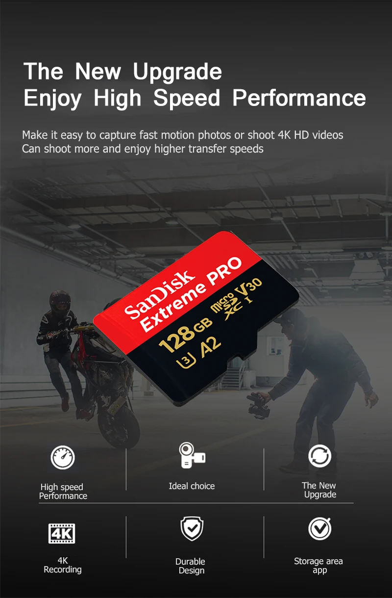 Карта Micro SD Sandisk Extreme Pro, карта памяти TF до 170 Мб/с, A2, V30, U3, 64 ГБ, 128 ГБ, с переходником на SD
