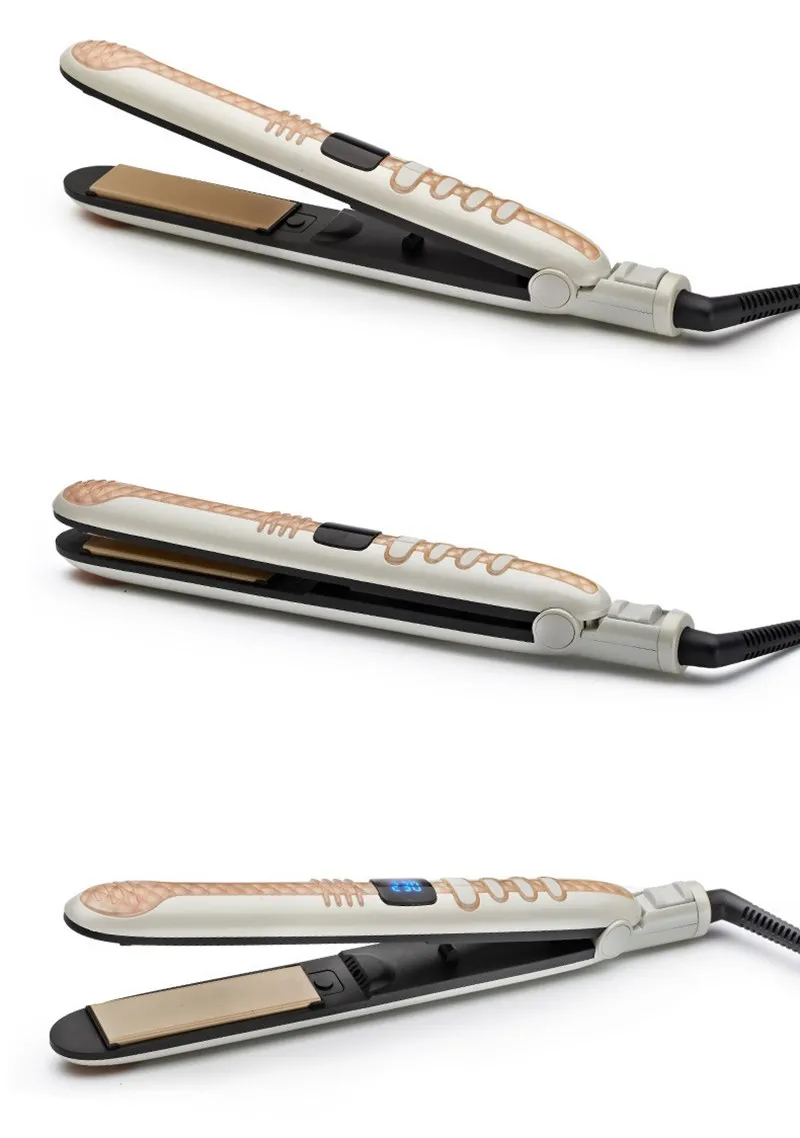 Подходящее напряжение: AC220-240V 50 / 60HZ 45 Вт Температура дисплей: синий экран дисплея, Температура 100-230 градусов может быть отрегулировано произвольно, 1 час функция автоматического отключения, Функция блокировки: задняя часть выпрямитель для волос имеет функцию блокировки и функция блокировки температуры. Двойное нажатие выключателя дважды может блокировать температуры окружающей среды. 360 градусов вращающийся шнур питания, 90X25MM алюминия в форме спирали из керамической поверхности масла для нагревательного элемента.