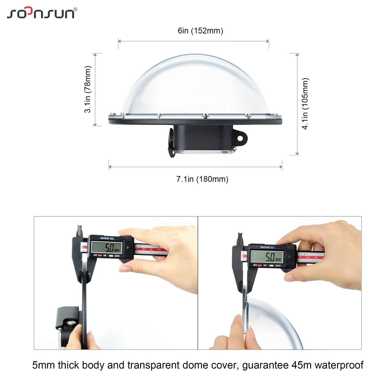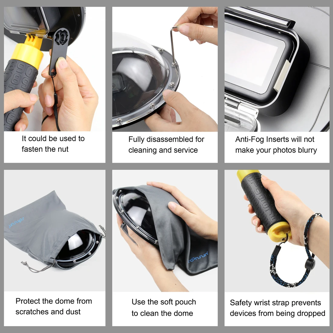 SOONSUN 6 ''купольный порт разработан специально для камер GoPro Hero 8 Black. С его помощью вы можете отодвигать ватерлинию от объектива камеры GoPro, снимая неискаженные удивительные изображения/видео как выше, так и ниже вателина. Вы будете очень забавно делить половину и половину, 50/50, поверх или раздельных фотографий с вашей семьей и друзьями.