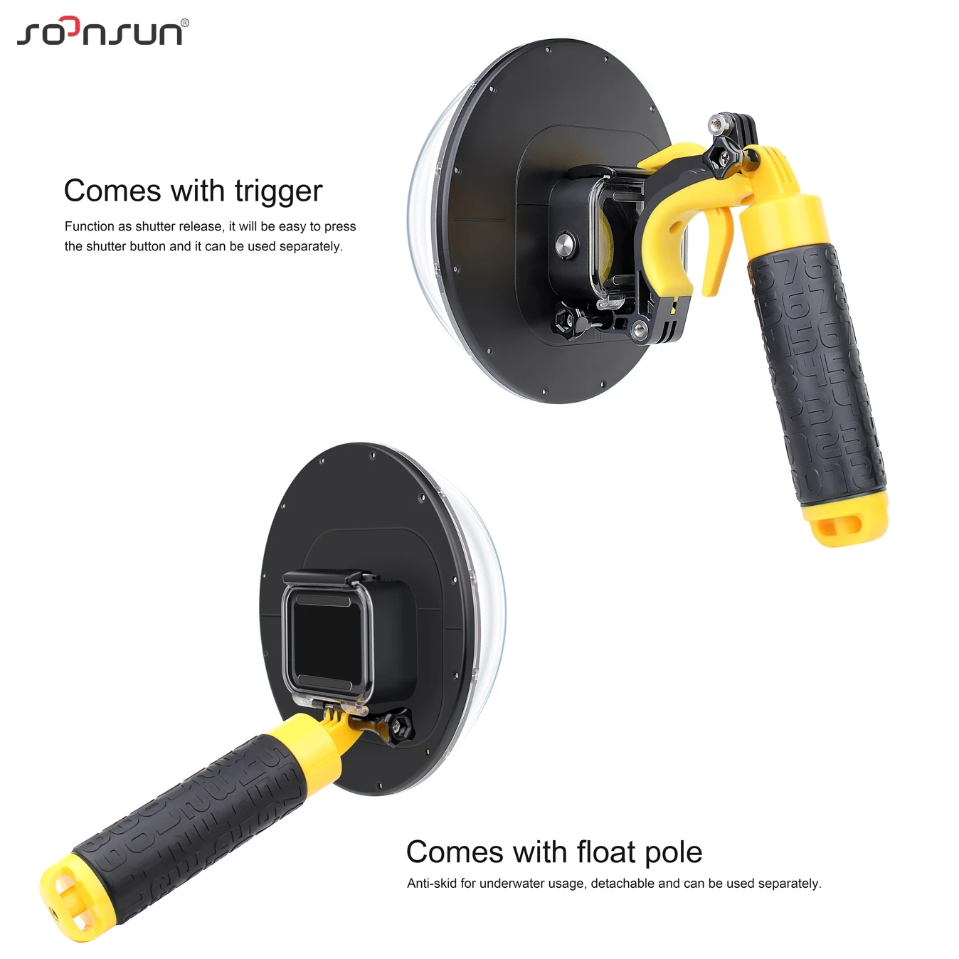 SOONSUN 6 ''подводный купол порт объектив с водонепроницаемым корпусом корпус триггер + поплавок ручка для GoPro Hero 8 черный