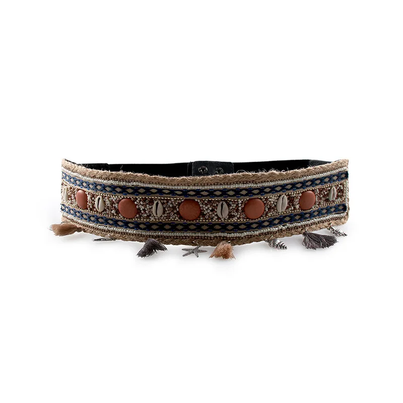 Модные женские пояса натуральный морской ракушка Бохо пояс с бусинами цветок винтажный элегантный свадебный пояс богемное платье декоративный пояс Размер: 6 см x 70 см (подходит для талии 60-80 см) Материал: пластиковые бусины + Морская ракушка + резинка