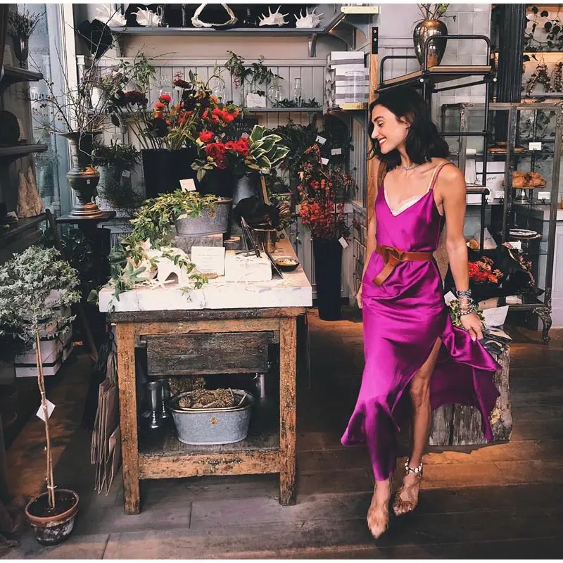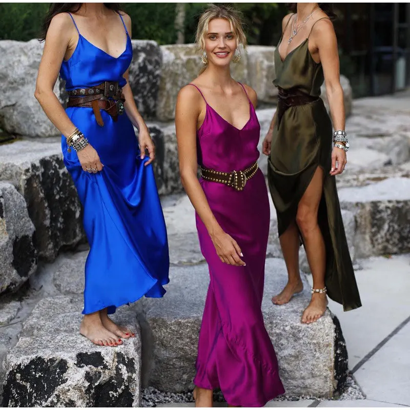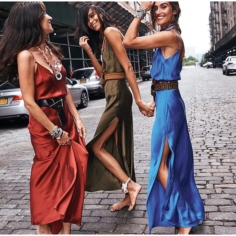 Женское длинное платье с разрезом по бокам, сексуальное атласное платье без рукавов с открытой спиной, весна 2020, винтажная Женская одежда для вечеринок