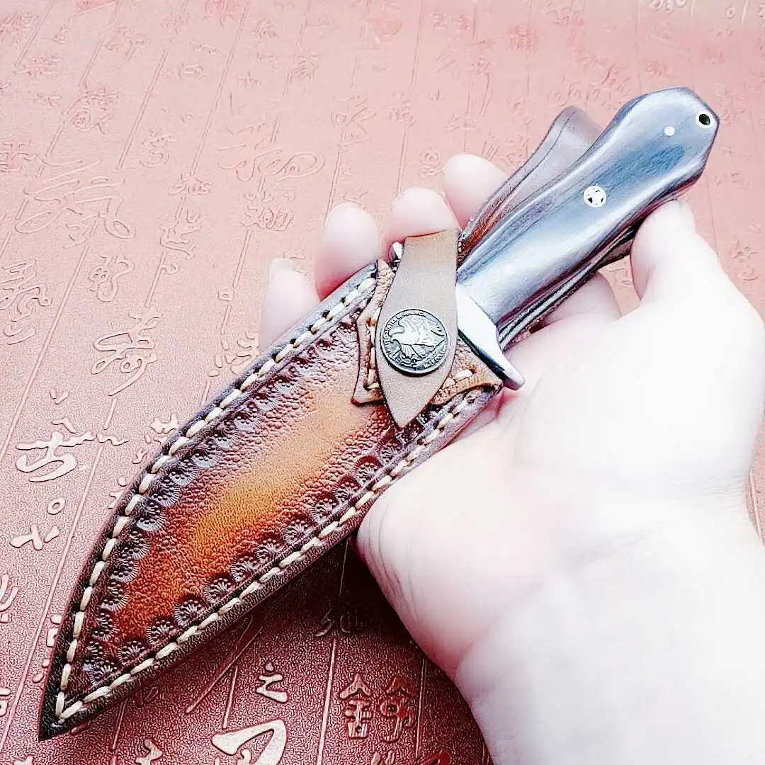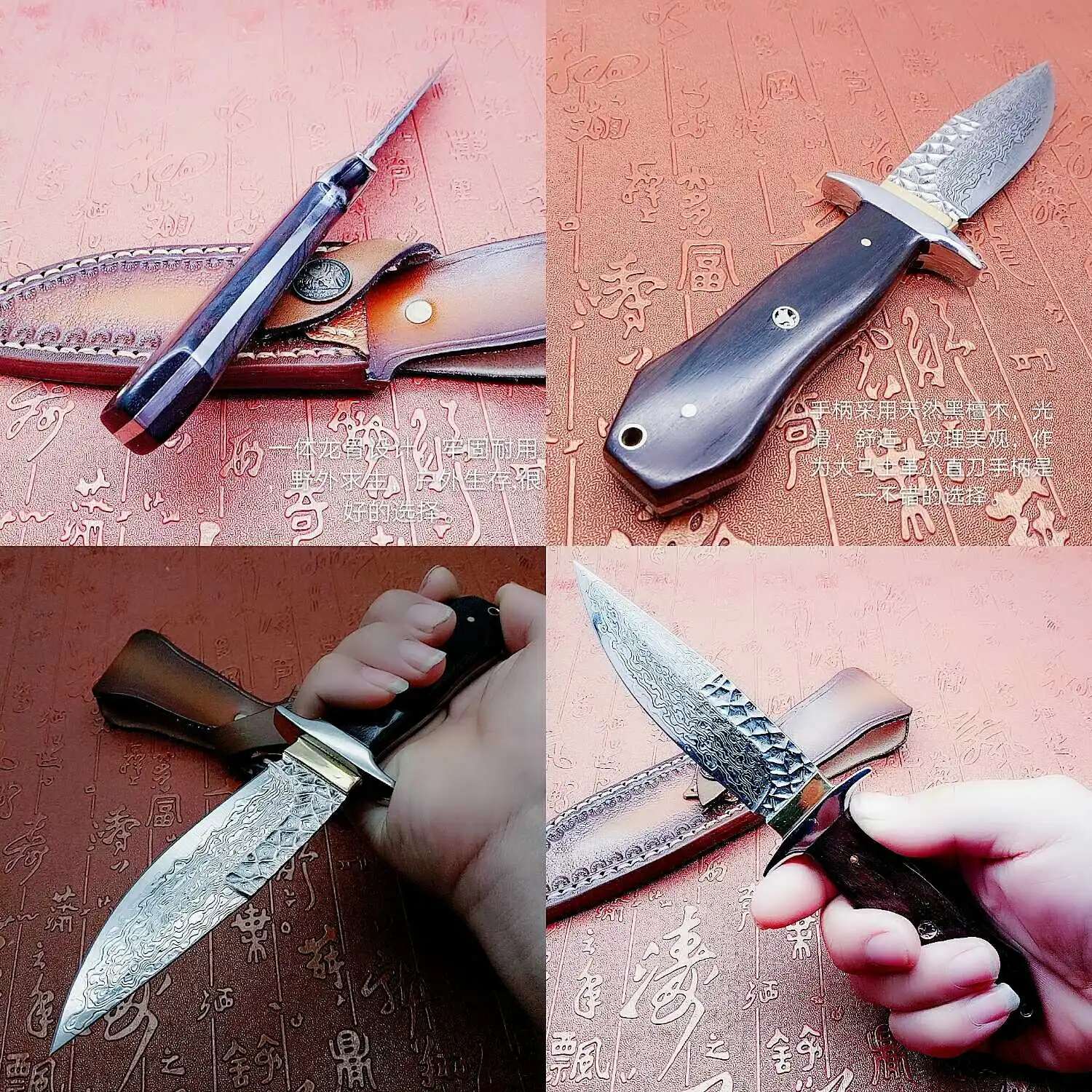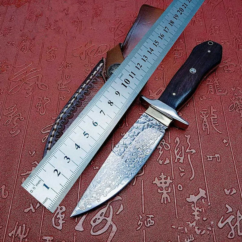 Нож с фиксированным лезвием из дамасской стали, ножи для кемпинга, инструменты для выживания, охотничьи ножи ручной работы, черная деревянная ручка