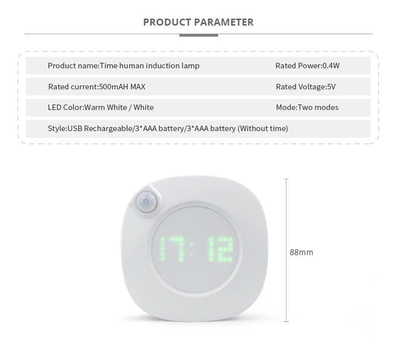 1. Индукционная лампа времени: отображение времени, поворотное затемнение, индукция человеческого тела, переключение холодного и теплосветильник, Магнитная Адсорбция, непрямой источник светильник.