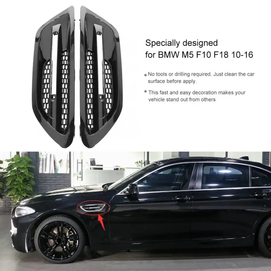 Специально разработан для M5 F10 F18 10-16. Включая левый и правый. Это придает вашему автомобилю стильный и индивидуальный вид. Изготовлен из АБС-пластика. АБС-пластик является чрезвычайно прочный материал известен своей светильник-вес, отличная износостойкость и ударопрочность. Дизайн является новым, привлекательным и красивым. Никаких инструментов или бурения не требуется. Просто очистите поверхность автомобиля перед нанесением.